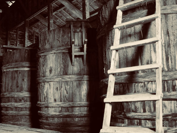 このもろみを三年育て上げてやっと醤油を絞ることができるようになります。